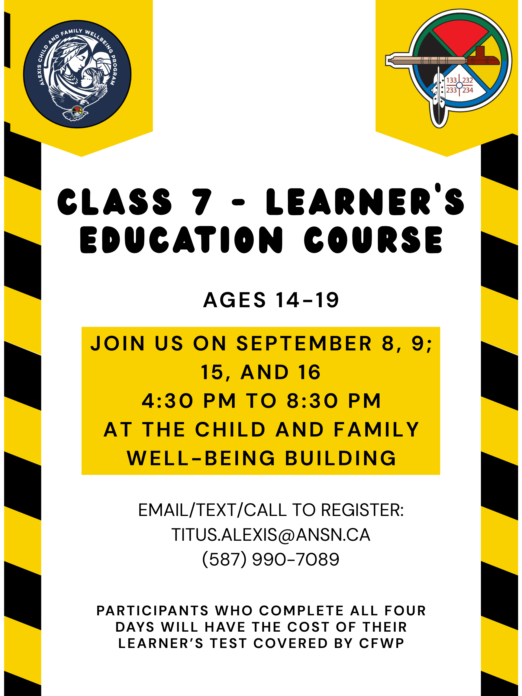 Participants who complete all four days will have the cost of their learner's test covered by CFWP.